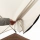 帐篷四角配有调节带,营柱使用营绳相连,仅需要插入地垫的四角环索中,拉动后框架自动立起,即可完成搭设,减少繁琐程序。(索环附有可调节长度的带子)