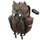 背包上的一对金属眼睛,和采用反光物料制造的亮白獠牙及两侧爪子最为抢眼 。 索绳袋口主袋身,可供足够空间携带物品,两侧的魔术贴侧袋与主袋之空间,方便摆放水壶随时轻易取出,另有 2 个拉链袋设于前腹及头顶。虎爪型拉牌成另一亮点,是专为此大猫背包设计。