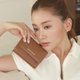 Velin 撞色牛皮三折中夹 - 秋暮棕