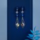 -材质:施华洛世奇亮丽白彩多边形水晶,深蓝幻彩水晶珍珠,抗过敏纯银带钻耳勾,可改无痛带钻耳夹。