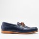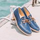 帆船鞋的轮廓,在鞋缘缝上螺旋式缝线,像缠绕绳索的船桅,踏上它就如同要出航的船准备扬帆,在行走间漫步着轻快;以皮革裁切的皮方条取代蜡感鞋带,为鞋面增加略带粗旷的立体轮廓,亦让整体视觉显得更有朝气,抖擞准备出发异地的冒险。