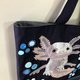 - This is a quilted lesson bag with an axolotl applique, and it does not have a gusset. The bottom of the bag is made of faux leather, ensuring that you can confidently place it on the floor or ground. It is carefully crafted in navy color, and the combination of the felt applique and the oxford fabric creates a pleasant finish. Your child will easily recogni