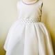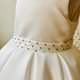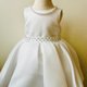 这款白色礼服以柔滑缎面布料与极简剪裁呈现纯净气质,线条干净俐落、没有过度装饰,让孩子的神情与笑容成为画面主角。