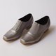 将传统绅士鞋款式结合本季主题,鞋舌位置以包裹皱缩松紧带技法,呈现特殊的纹理质感。楦头以小方型楦头设计,增添体态修长视觉效果,并以鞋头棱线强化出率性风格。