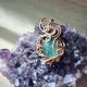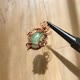 当初制作的时候曲线超级一气成让我留下了特别印象的一件,绿草莓晶的色泽与闪片和古铜色也十分相衬,先前与矿石有人聊起价格上相对比较平易近人的绿色透光矿石选择真的不算多,绿草莓晶可能又是其中特别亲民的种类,这也是我比较少收的矿石种类,若是喜欢这个色调可以把握机会!