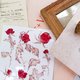 需自行裁切外型,輕柔地移除透明膜,此時轉印貼紙會連同透明膜一起被剝離起來,將其覆蓋在目標物上,用手(或是信用卡)將其推平後,慢慢地撕開透明膜即可。