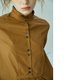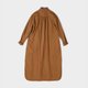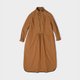 - 棕黄色全棉衬衫式连衣裙,这款采用肩颈袖合体、衣身宽松的剪裁,包容性极强。兼衬衫的利落感与棉布裙的慵懒感于一体,细节处可见一丝孩童时的天真,也可见成长后带来的理性。