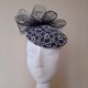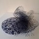 **这款复古风格的帽饰,以木槿花图案蕾丝布为基底,搭配细致立体的手工蝴蝶结网纱,展现柔美与率性的平衡。深蓝与白色的对比,勾勒出经典又不失现代感的气质。无论是搭配礼服参加婚礼、鸡尾酒会或主题派对,都能成为造型亮点。帽饰配戴轻盈稳固,既能提升气场,又保有细腻优雅的氛围,是喜爱复古与典雅风格的最佳选择。**