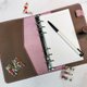 手帐笔记本是很多人随身携带的小物,也是上班族开会必备的重要物品,于是我们使用天然皮革材质,设计出这款线条简约、时尚大方的素面皮革手帐,内页搭配六孔金属中轴,方便选择个人适合的年月历或条纹空白内页,并且随时可以更换和增减,以符合每个人不同的需求,还可以加上定制化雷射雕刻服务,增加其独特性,是赠送手作礼物的最佳选择,也为生活增添几许优雅的品味。