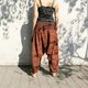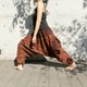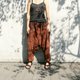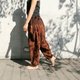 褲子上壓印暖黃橘色系的梵文圖騰,再過經過多道的石洗(stone wash)處理,達到外觀上粗曠的洗舊感,棉麻布料也變得更柔軟,手感更加溫柔舒適。復古洗舊感的阿里巴巴褲,更顯得洗練也優雅,是一種溫暖而豐富獨特風格。