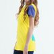两侧袖子用了冷暖色系拼布,使得这款上衣呈现出一份活力感