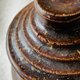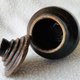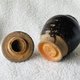 吉州窑的烧制工法深受胎土物,施釉方式和生产习惯等影响。以烧制模式说,吉州窑因地理环境所赐在瓷土无法改变含砂量高的限制下窑匠们取长避短,形成了“重釉不重胎”的习惯,即在坯胎制作上较为随兴,刻意追求釉色变化来弥补坯胎不足。结果形成了釉色的千姿百态,坯胎粗中潇洒随意的显着特征。即使随着烧造技术的进步,施釉方法从半截釉发展到釉不及底再到施满釉充分表现了窑匠们精益求进的态度,但重釉不重胎的传统依然盛行也形成了生产模式。因此除了少数上品外,大多数黑釉博瓷的圈足内外的刮刀痕或跳刀痕均较显着,成为鉴识窑口的重要特征。该茶罐底及底足露胎土、短颈圆鼓腹、罐内外均施褐釉、柔亮光泽呈黑褐色。罐口沿边有制造时的小窑伤。上盖凸起,握手处呈钹状以方便拿取。