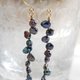 Earrings made from a series of small metallic navy keshi pearls.