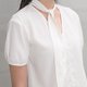 知性简约的领巾装饰上衣,微灯笼袖型撑起袖身的立体抛度。霜白色简约优雅,两色复古印花则别有韵味,可搭配铅笔裙或A字裙展现优雅的仕女身段。
