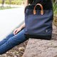▍ 简约L号真皮帆布购物袋 : 轻松放入A4资料与书籍,真皮手把点缀质感层次