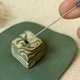 香插是由白陶土分别混合浅绿色与墨绿色后,制成两种不同颜色的土,然后再将两色土层层压合,最后削成梯形,待不同干度再进行修胚,让上面的线条更清晰与明显一些~由于制作不易,需等待不同时间点进行色粉与陶土的融合与修胚,所以包含金水釉部分,整体制作完成时间需要一周以上,是市面上少见的做法喔!