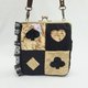 选用黑色天鹅绒和金色钻石绒,由手工绘制并剪裁出扑克花色造型,交错拼接在不同色块上,营造出鲜明的对比和层次感。