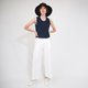 永远经典的深蓝色棉质短上衣,我们的简约而优雅的削肩清爽棉质短上衣。轻松搭配多种裤子和裙子。千万不要错过这个!