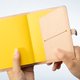笔记本采裸背线装,可完全摊平书写,空白内页任你涂鸦写字,制作个人风格的手帐本。A7尺寸连女生都能一手掌握,单手拿笔记本书写也没问题!小尺寸设计可放口袋、小包包,扣环可夹一支笔,走到哪就能写到哪,让你的灵感不飞走。皮革套的封面里和封底里可插卡片或名片。