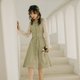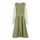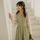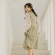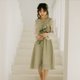 - "这样的季节怎么能少了一抹清新脱俗的绿呢,灰色调的豆绿色明度不高,低调中带着文艺复古的气质。 宽腰带设计凸显纤细腰肢展现好身材。不同常规“一纹到底”的绿条纹在裙身差异错位的拼接,优雅大方。