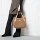 - 时尚轻网布 真牛皮 手提单肩包(卡其色)