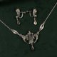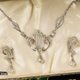 - 美国 Am Lee 品牌古董,纯银掐丝工艺镶莱茵石,宫廷风项链耳栓套组,含原厂盒装、品牌说明卡