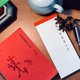 〈素衣手执本〉外盒使用赤牛皮纸压制木纹,袖套、内盒仿窗花轧型,象征“外圆内方”。