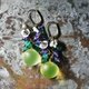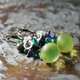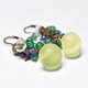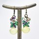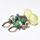 这款耳环串联了丰润的复古铀玻璃、饱满的紫水晶与绿玛瑙、白蝶贝小花,以及复古波西米亚珠。