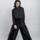 **2025AW《RAVEN》** |**灵感**| “RAVEN”系列灵感源自神话中的乌鸦——这一神秘生物在多种文化中兼具智慧、黑暗与未知的象征意义。设计师郭玮探究乌鸦在台湾鲁凯族、北欧及希腊神话中的角色,并在本季作品中重新诠释其形象。从羽毛的流动、骨架的结构到展翅瞬间,每一个细节都蕴含深厚文化底蕴,带领观者进入智慧与神秘交织的时尚对话。 系列将原住民图腾与现代设计元素巧妙融合:设计师解构并重塑经典千鸟纹,将乌鸦飞翔的姿态与羽翼融入几何单元,捕捉展翅动态,创造全新印花语言。色彩上,橄榄绿象征隐秘与深沉,炽焰红致敬乌鸦创世的传说之光,寂静灰则呈现时间与记忆交错的沉静氛围。印花随模特步伐律动,如同乌鸦的翅膀在服装上翱翔,展现动态的神秘美感。 |**材质**| 羊毛 40% 聚酯纤维 57% 弹性纤维 3% |**颜色**| 黑 |**洗涤方式**| 可机洗 低温整烫 不可漂白 不可烘干 **INF 25AW TAIPEI FASHION WEEK** https://youtu.be/NQXCtYwq0W0?si=Gf42oioFEICcXJg9