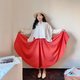 3/4圆加抽折的大大大份量圆裙,后方使用松紧带不勒肚肚,