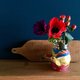 花の周りに集るハチドリ达。グレーベース×紫色のパターンは大人っぽく落ち着いた雰囲気のに。イエローベースに赤と青が配色されたパターンは、持つだけで心が晴れやかになりそうな鲜やかな色合いです。