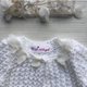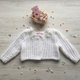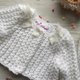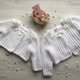 Knitting jacket for baby girl. Jacket with 3d flowers and pearls.