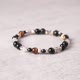 ◆矿材与尺寸:黑曜石约 6mm // 黄虎眼石约 6mm // 钻切拉长石约 5mm // 钻切黑玛瑙约 4mm