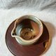 这件柴烧茶海带着古朴厚重的韵味与金彩交错,四天三夜不间断的柴火让胚体落了天然灰釉,十分耐人寻味。使用时断水俐落,手感非常好。