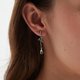 树枝的尾端悬挂着一颗海水蓝拓帕石,一样是多角的切面,让拓帕石闪耀迷人,就像是清晨的露珠,所以与树枝结合,犹如冷空气凝结在树枝尾端,集合而成的水气,让人感受到清新而自然