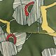 橄榄绿底+米白、黄印花