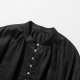 设计上,前襟钮扣旁加入细致的褶皱设计,为休闲的亚麻面料增添了一丝优雅气息,让整体造型更加精致。