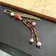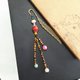 材质:红纹龙玛瑙12mm,橄榄核隔片6×3mm,青玉8mm,菩提9×7mm,彩珠10mm,虎眼石4mm,流苏:直径1.6mm,长9mm,天目菩提,羽毛书签