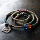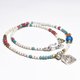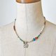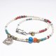 此为一款串连了复古印度银坠饰、复古蓝色蜜柑珠、密佐兰红玉髓、金赤色White Heart、白色珠饰及绿松石绿 Chevron 等饰品的项链。