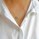 吊坠表面呈现捶打纹的质感, 凹凸不平的表面将光线向四方八面反射开去,配上轻巧闪烁的十字链, 将华丽光泽伸延到极限。