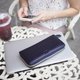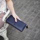 - Long wallet, zip wallet, cow leather, Navy