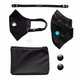 组合内容物:一盒口罩(口罩外层1个、滤心2个、可拆卸调节式头戴1个、旅行收纳袋1个、换气阀1对、阻隔型换气阀1对)、一盒滤芯(含3片滤芯)