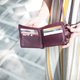 - 正面口袋分为两格,以皮革覆盖,方便收纳常用物品。可轻松放入折叠的纸钞、卡片和零钱。