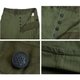 1943年美军推出了全新标准化野战军服,其中M-1943军裤是宽松直筒的设计,以便于军人在寒冷的天气中可以内搭御寒毛裤,裤子使用橄榄褐绿色HBT鱼骨纹布料,大口袋的设计方便携带工具,是二战后期经典的美军制式裤装。