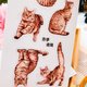 需自行裁切外型,輕柔地移除透明膜,此時轉印貼紙會連同透明膜一起被剝離起來,將其覆蓋在目標物上,用手(或是信用卡)將其推平後,慢慢地撕開透明膜即可。