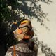 - 4.5 studio Handmade 设计商品 型→帽型略尖如小山丘般 色→复古几何图案印花-卡其 质→斜纹布拼接毛料/内里绒布 此款现货可即刻寄出