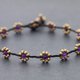 这是用深棕色棉蜡线编织而成的手工编织脚链,配以蓝色紫水晶石和黄铜珠。