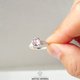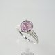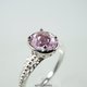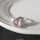 这款戒指采用了带有粉红色调、色彩淡雅的尖晶石,并镶嵌于饰有唐草和缕空图案的戒台上。