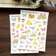 The size is about the size of a postcard, and there are about 30 items per sheet.
