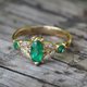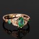 14K金戒指,镶嵌马眼形祖母绿、侧边钻石、祖母绿与蓝宝石